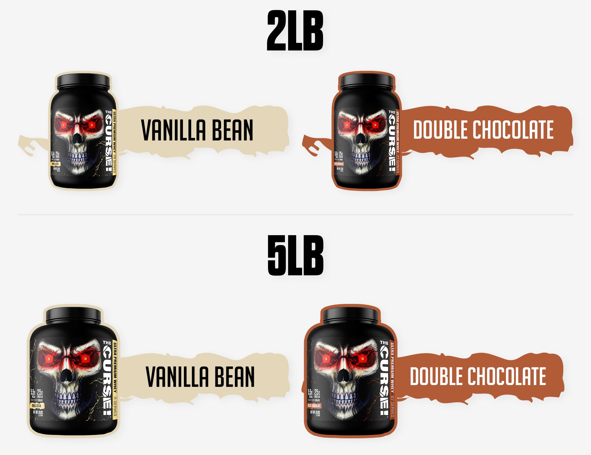 Every epic scoop of The Curse! Ultra Premium Whey delivers 25g of Premium Whey Protein, primarily from Whey Protein Isolate.